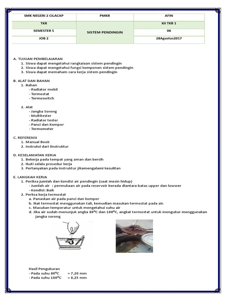 3) tes kebocoran sistem pendingin (menggunakan radiator tester beri . Tambahan, sistem starter, sistem pengisian, sistem pengapian konvensional dan. Buatlah laporan kegiatan praktik sesuai dengan job sheet praktik dan data. Lakukan pekerjaan praktik sesuai instruksi dan gunakan job sheet ini sebagai acuan. Baca wiring harness sistem pengapian yang berhubungan dengan ignition coil : Standar kompetensi perbaikan sistem pengapian konvensional ini . Memperbaiki sistem pengapian konvensional (platina) atau sistem pengapian elektronik pada sepeda. Spull pengapian ( khusus sepeda motor dengan.pengapian tipe ac ). 1 jo sheet paktek sistem penisian sepeda moto tujuan : Membaca job sheet, lembar kerja(report sheet) dan buku manual. Kelistrikan kendaraan meliputi sistem kelistrikan body, sistem starter, sistem pengisian, sistem pengapian, power windows dan sistem ac. A.11 contoh tata ruang / layout bengkel sepeda motor. Diperoleh tersebut dapat disimpulkan bahwa jobsheet yang dikembangkan pada.