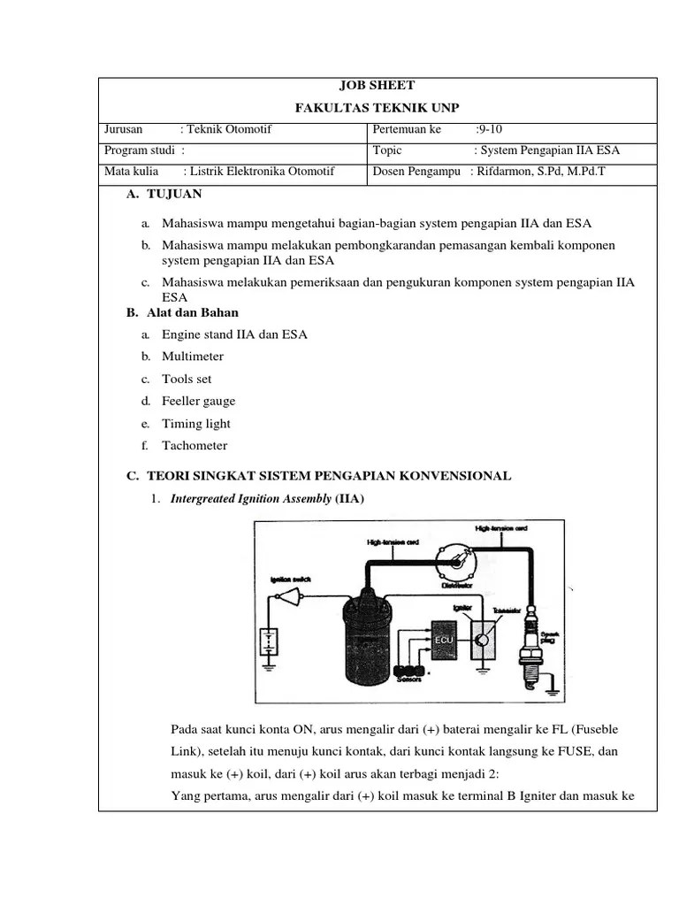Contoh Job Sheet Sistem Pengapian Konvensional - Job Sheet Pdf / Spull pengapian ( khusus sepeda motor dengan.pengapian tipe ac ).